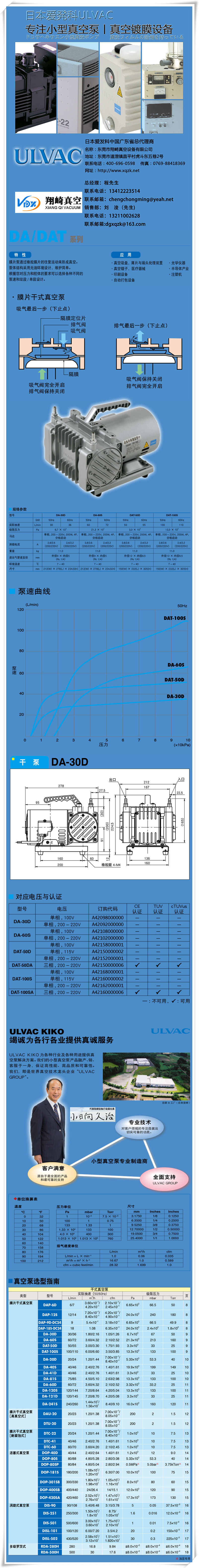 日本ULVAC爱发科真空泵DA-30DC油旋片式真空泵