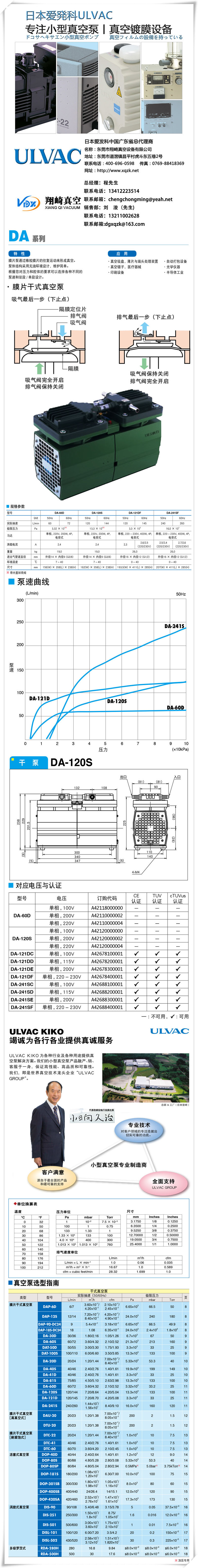 日本ULVAC爱发科真空泵DA-120S油旋片式真空泵