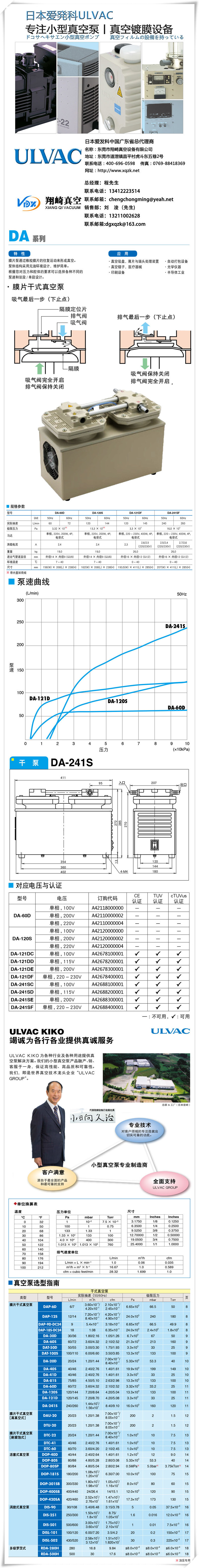 日本ULVAC爱发科真空泵DA-241SE油旋片式真空泵